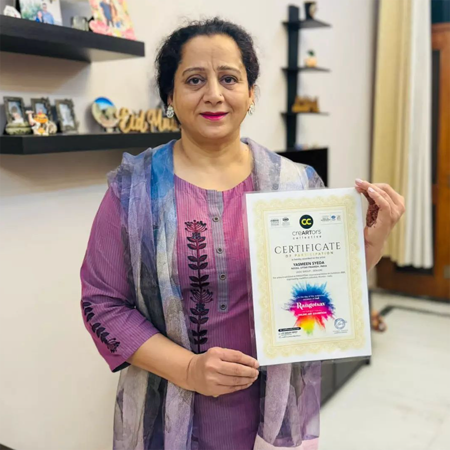 There is no commission on artwork sales. Artists may include their contact details (Mobile No., WhatsApp, Email, Instagram ID, Website URL, etc.) on name tags, so buyers can contact them directly.